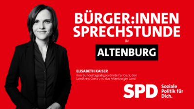 ich möchte gerne mit Ihnen ins Gespräch kommen. Deshalb lade ich Sie zu meiner nächsten Bürgersprechstunde auf den Altenburger Markt ein – am Mittwoch, den 9. August 2023 von 9.00 Uhr bis 11.00 Uhr. Kommen Sie gern vorbei!
