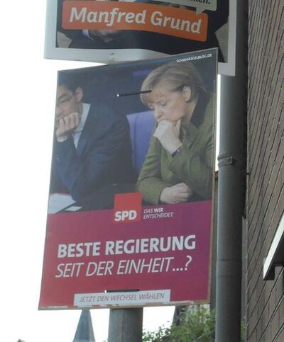 Die Kallmeröder haben es satt: Sie wollen die Umgehungsstraße. Deshalb plakatieren Sie ja schon länger ihre Straßen mit Plakaten gegen die Regierung des Stillstands. Merkel hat noch nicht vor langer Zeit gemeint, dass ihre Regierung die beste seit der Wiedervereinigung war. Mit dieser Aussage ist Carmen Listemann und die SPD nicht einverstanden. Es wurde viel zu wenig für Nordthüringen getan (daran ist auch Manfred Grund Schuld!), die versprochene Umgehungsstraße liegt immmer noch in der Schwebe. Zeit dass es sich ändert. Deshalb hat Carmen Listemann gemeinsam mit ihrem Wahlkampfteam heute eine kleine Plakatierungs-Aktion in Kallmeorde organisiert.